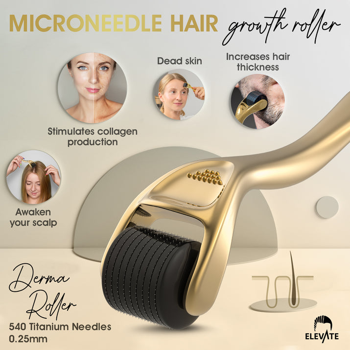 Answer 2: The derma roller features 540 safe titanium needles that create microscopic channels in the scalp, stimulating blood circulation and activating hair follicles. This increases the absorption of the hair growth serum, making treatments more effective and promoting healthier hair growth.
